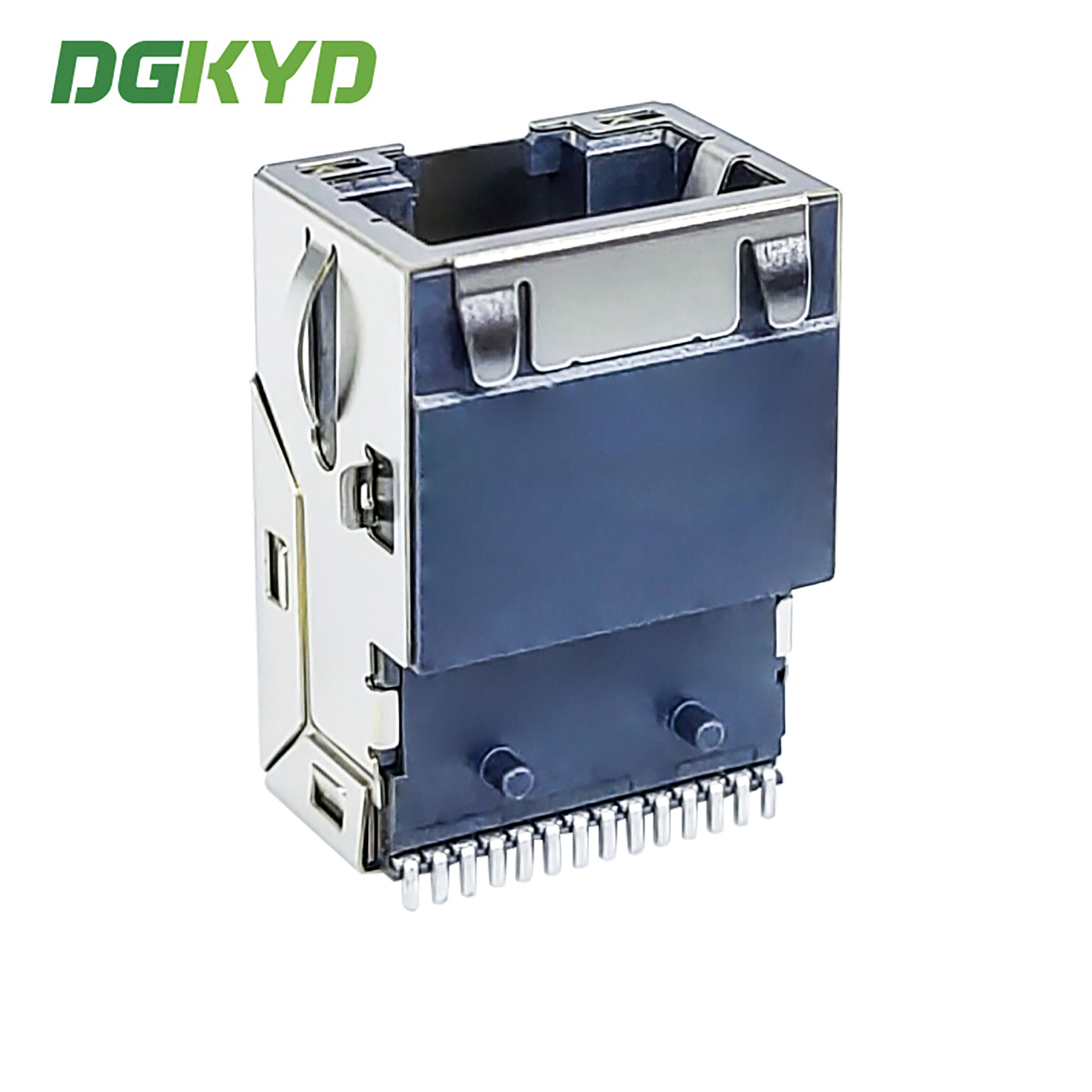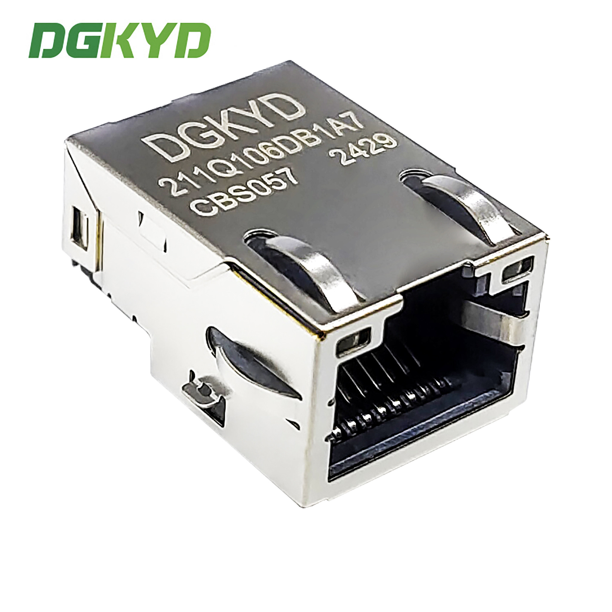 Μεταλλικό θωρακισμένο Dip Low Profile Rj45 Jack SMT RJ45 συνδετήρας βυθισμένης πλακέτας 4.2 DIP με θωράκιση και φως DGKYDCB421188AB1W6DB1075
