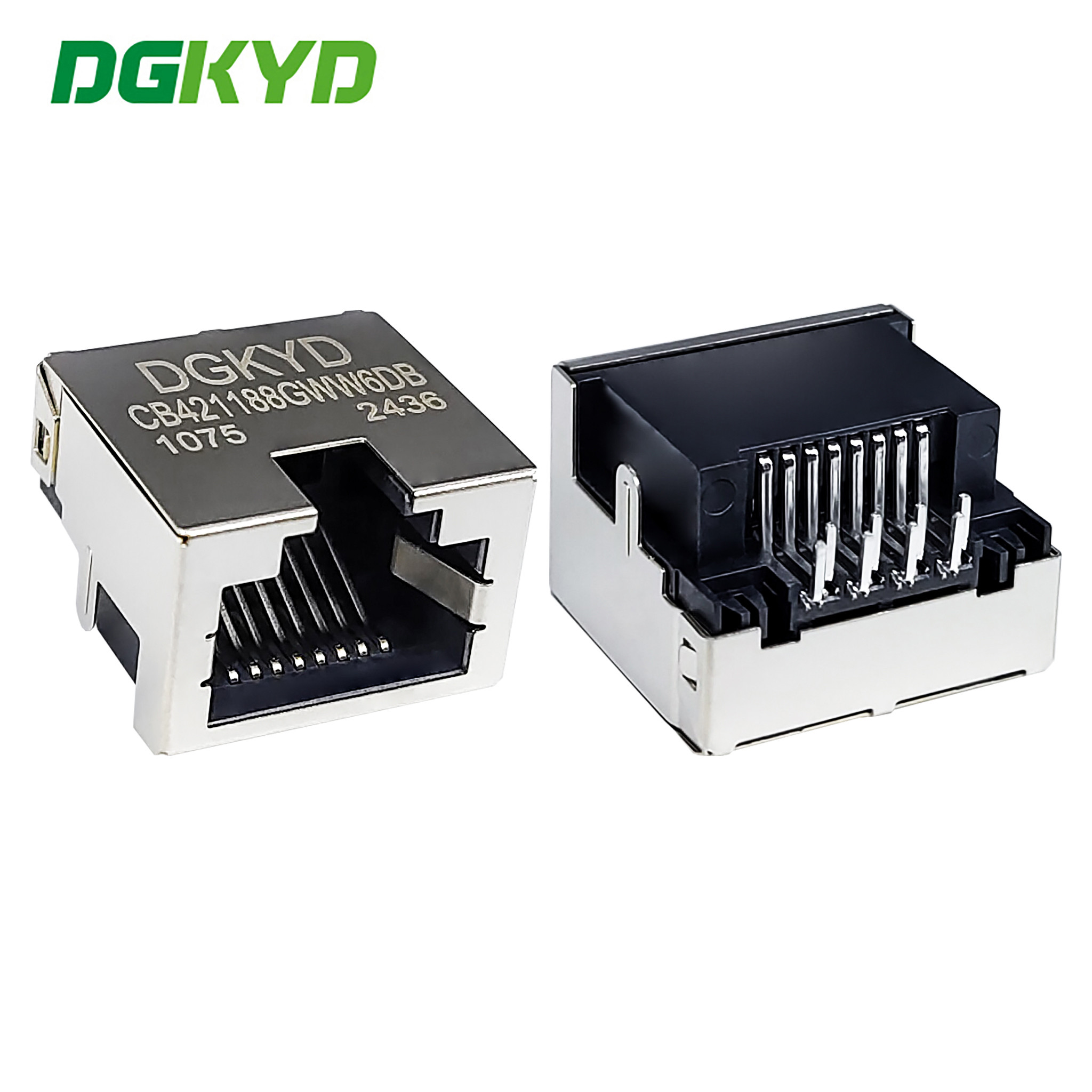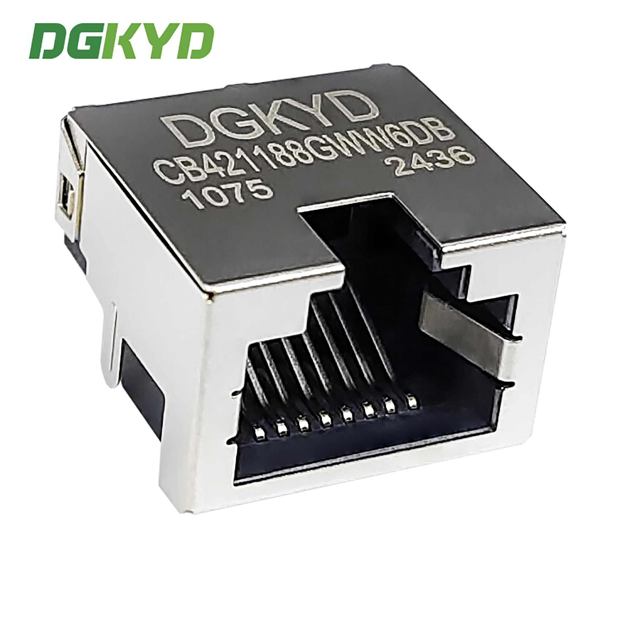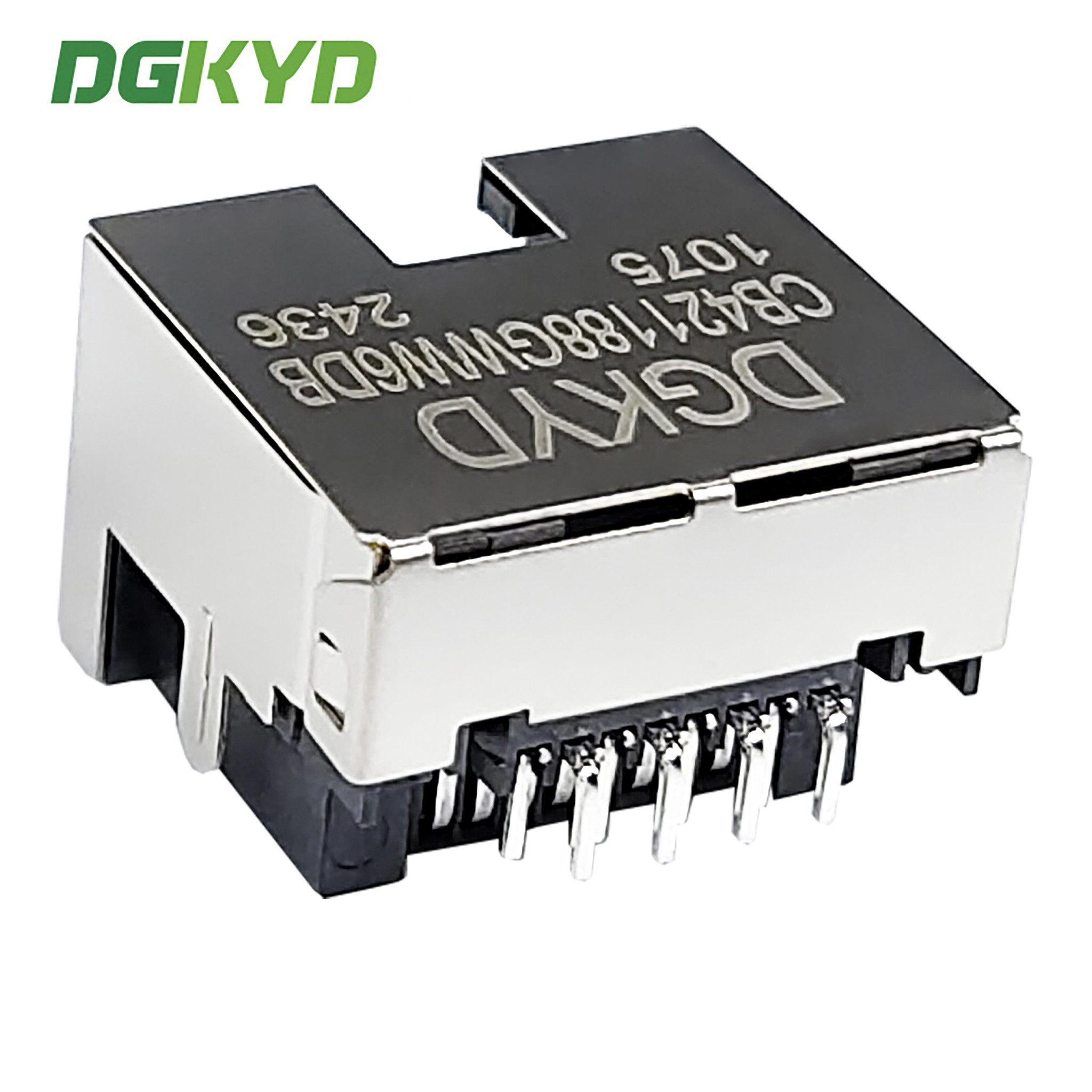 Μεταλλικό θωρακισμένο Dip Low Profile Rj45 Jack SMT RJ45 συνδετήρας βυθισμένης πλακέτας 4.2 DIP με θωράκιση και φως DGKYDCB421188AB1W6DB1075