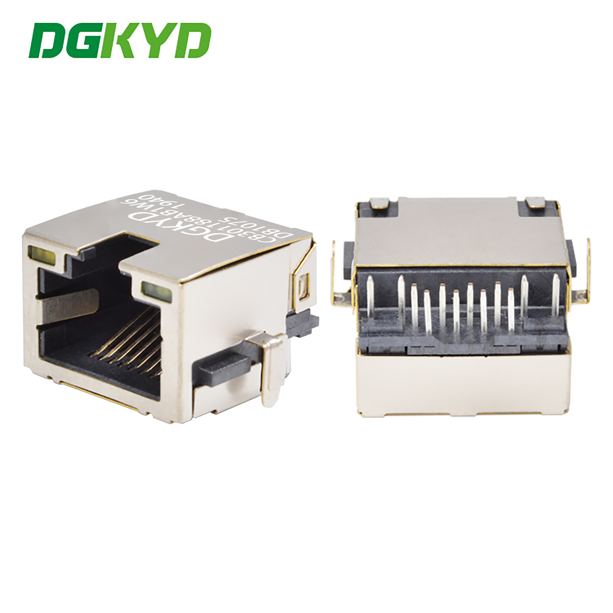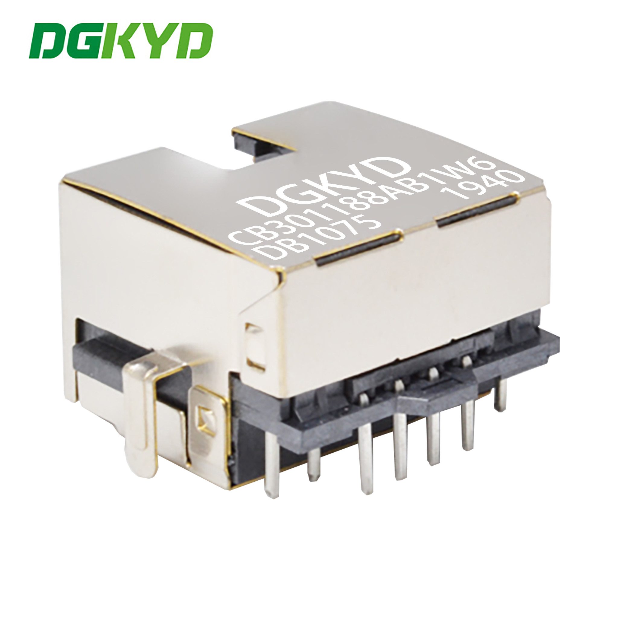 Μεταλλικό θωρακισμένο Dip Low Profile Rj45 Jack SMT RJ45 συνδετήρας βυθισμένης πλακέτας 4.2 DIP με θωράκιση και φως DGKYDCB421188AB1W6DB1075